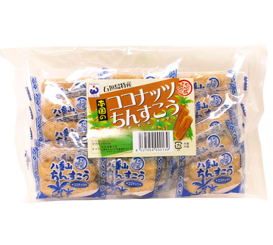 | 乾燥させたココナッツを生地に練り込んだちんすこう。甘い風味が広がります。 ココナッツ由来の食物繊維が入ってお口の中でシャリシャリとした食感があるのが特徴です。